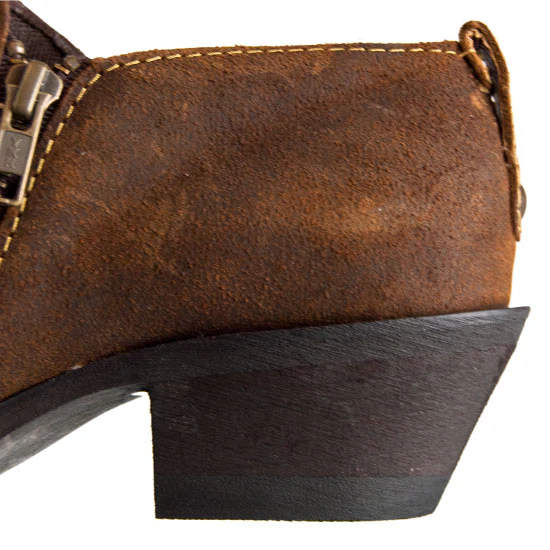 These Laredo Ryder brown tan boots may seem simple but are extremely practical and stylish. It's an ankle height boot featuring side zippers for extra ease when putting and taking them off. The boots offer a cowboy look with the heel and the snipped toe. A good cushioned insole while the bottom sole has a nice fun design.Leather: Suede