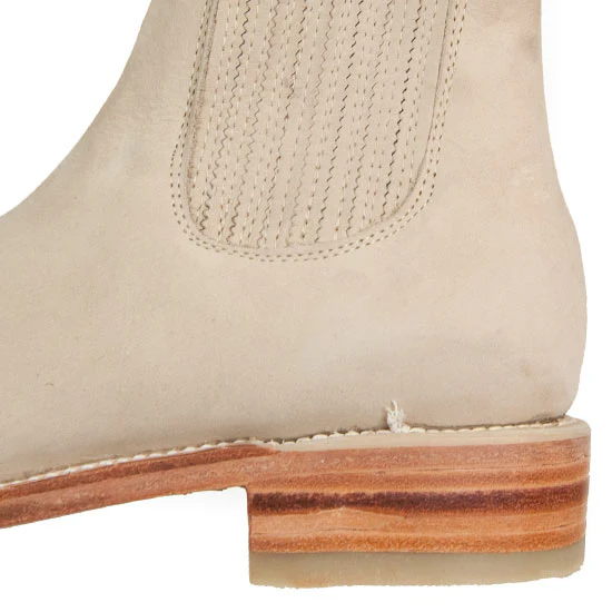 Potrero presents these modern bone colored nubuck western boots, a style that originated in Mexico and is typically known as botines charros. These boots are square toed instead of the traditional and classic round toed botines. The genuine suede ankle boot has a flexible shaft offering extra stretch and comfort. Also has stitched on pull straps for easy on and off access.Leather: Nubuck