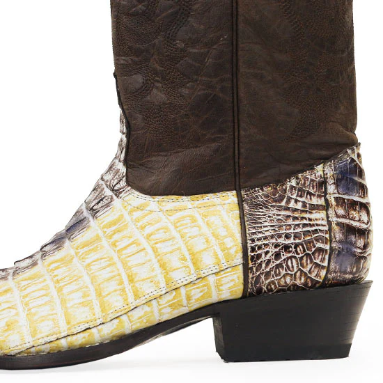 Men's Genuine Natural Caiman Alligator Tail Cowboy Boots With corded stitch Upper• Cushioned Leather Insole