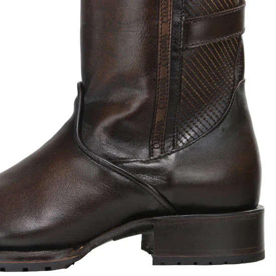 Men's Hand-Painted Brown Leather Urban Boot• Strap Around The Tube With A Metal Buckle
