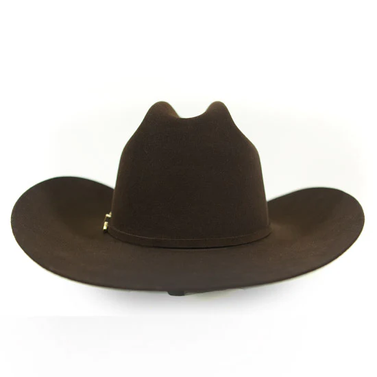 Men’s Chocolate 100X El Presidente Beaver/Cashmere Fur Felt HatThe Stetson El Presidente in rich chocolate is the definition of luxury Western headwear. Crafted from an exceptional blend of beaver and cashmere fur felt, this 100X hat offers a smooth hand, superior durability, and an unmistakably refined look. The classic cattleman crown is paired with a subtly turned-up 4" brim, giving it a distinguished, confident profile. Finished with a matching chocolate hatband and a three-piece gold buckle set featuring the Stetson logo, this hat stands at the top tier of Western craftsmanship. Complete with a Stetson travel hat case, it’s made to be worn, admired, and preserved.