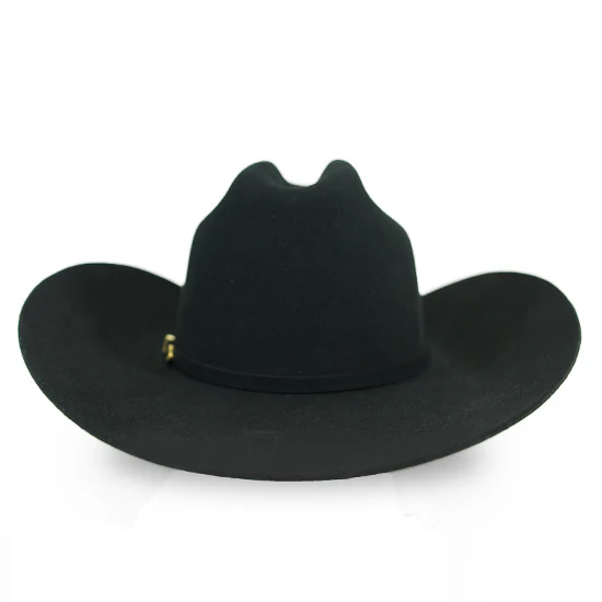 Men’s Black 100X El Presidente Fur Felt Cowboy HatThe Stetson El Presidente in classic black represents the highest level of Western craftsmanship and refined style. Made from premium 100X fur felt, this hat delivers a smooth, structured feel with long-lasting durability. The timeless cattleman crown is paired with a subtly turned-up 4" brim, creating a bold yet elegant silhouette. Finished with a matching black felt hatband and a three-piece gold buckle set featuring the Stetson logo, this hat is a true statement piece. Complete with a Stetson travel hat case, it’s designed to be worn with confidence and preserved for years to come.